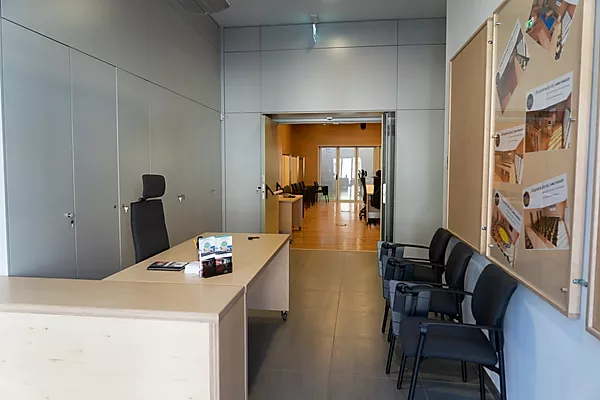 O χώρος υποδοχής και στο βάθος διακρίνεται η αίθουσα πολλαπλών χρήσεων.